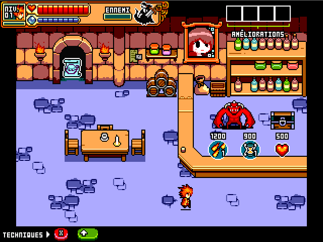 Petit bug à déplorer, une fois le jeu fini, si on décide de continuer, la deuxième salle sera celle du boss, le coffre sera déjà présent et la porte déjà ouverte.